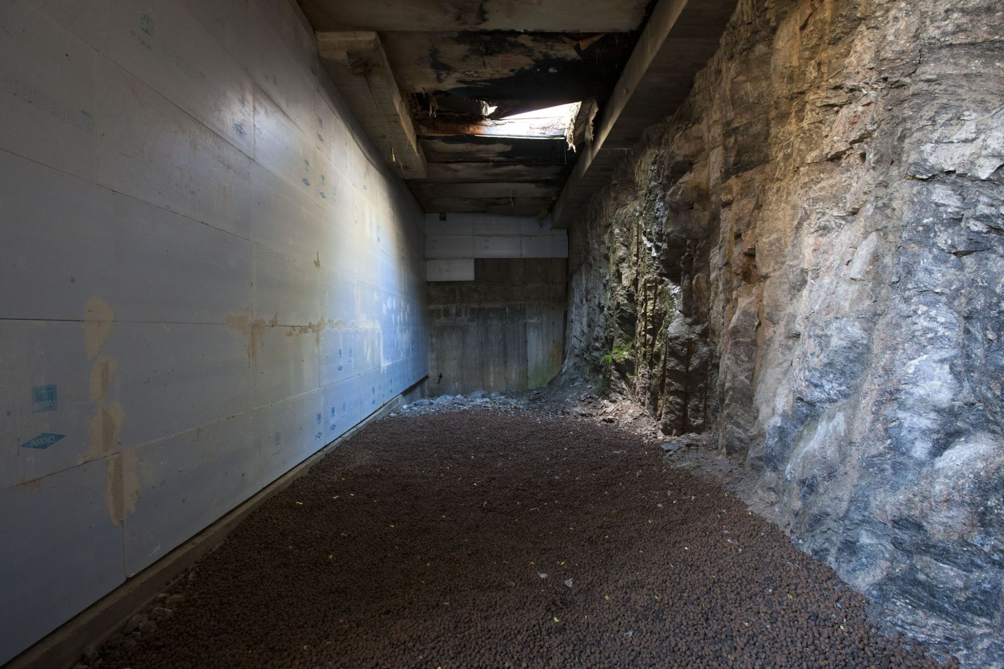 I villan utanför Stockholm, ritat av Bengt Hidemark, fanns ett stort bergrum byggt med intentionen kunna magasinera stora volymer vatten. Men då denna funktion aldrig blev realiserad, fick vi istället uppdrager att konvertera utrymmet till en konstnärsateljé.