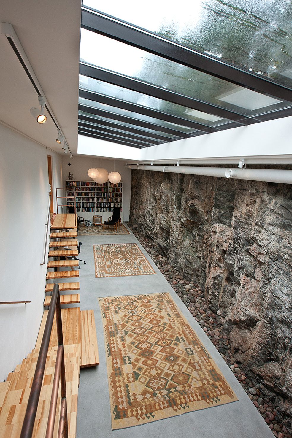 I villan utanför Stockholm, ritat av Bengt Hidemark, fanns ett stort bergrum byggt med intentionen kunna magasinera stora volymer vatten. Men då denna funktion aldrig blev realiserad, fick vi istället uppdrager att konvertera utrymmet till en konstnärsateljé.